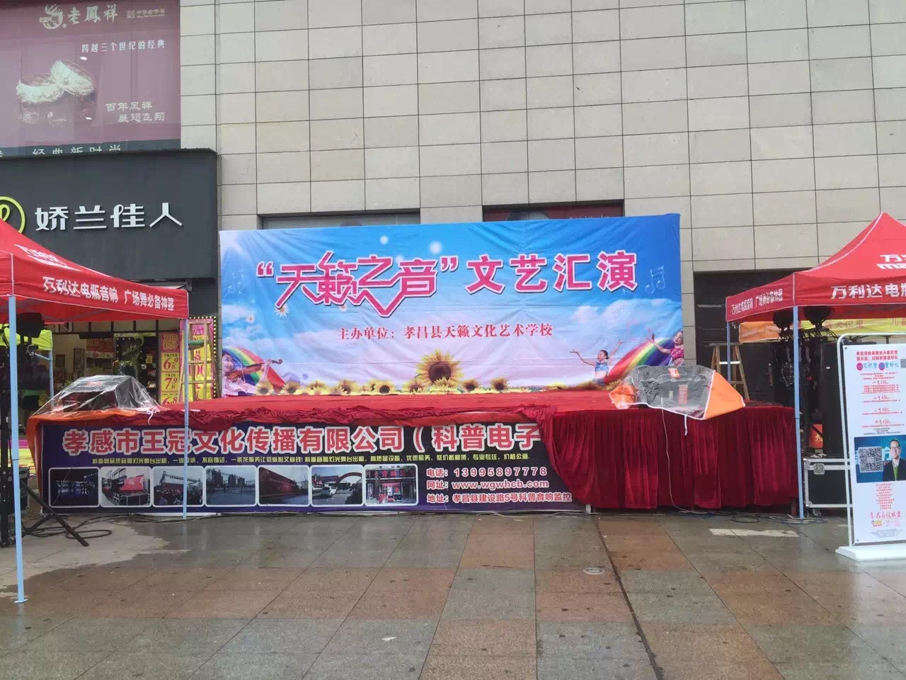 孝感市王冠文化傳播有限公司是由孝昌科普電子獨資,承接演出、奠基開盤、門店開業、企業年會、比賽及社會公益活動的策劃和執行。對外出租LED屏、音響、舞臺、燈光、投影、桁架。代理整合主持人、演員、模特、明星等節目資源。